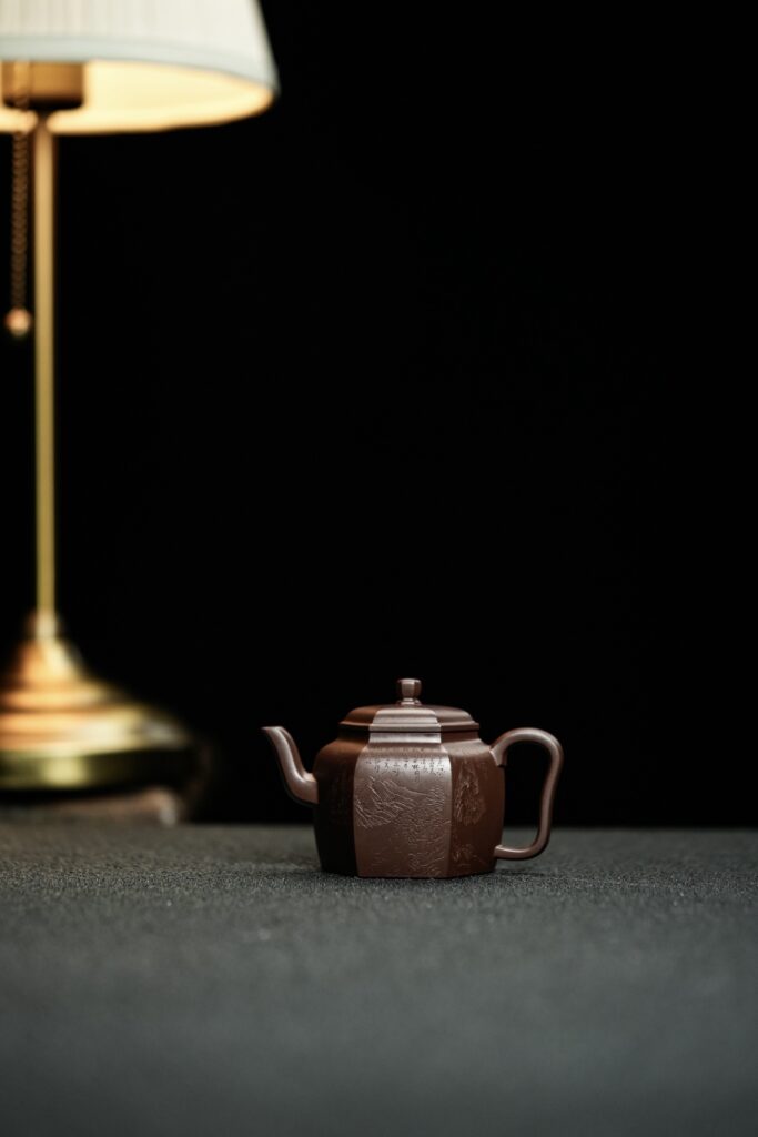 原矿顶级老紫泥六方花灯紫砂壶