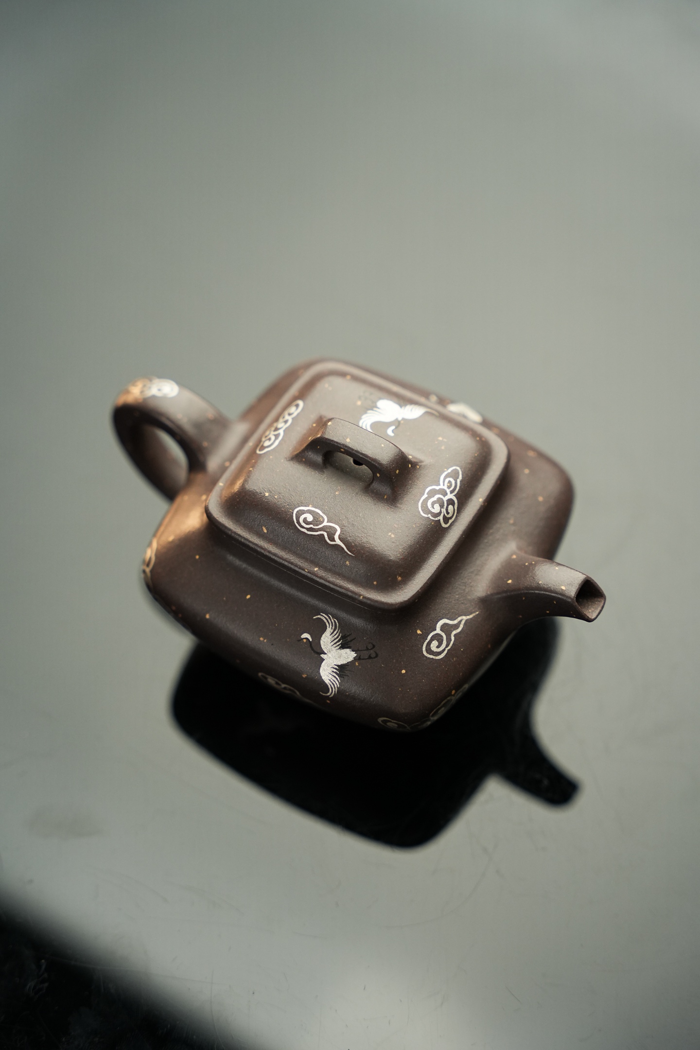 - 优质泥料:因含天然云母片、石英颗粒,表面可见“砂感”(Sand Texture),颗粒大小不一、分布自然(如段泥的“鸡眼”状颗粒、降坡泥的“金砂”闪烁)。 • 例:老紫泥烧成后,表面可见星星点点的白色云母片,触感略糙但不刮手。